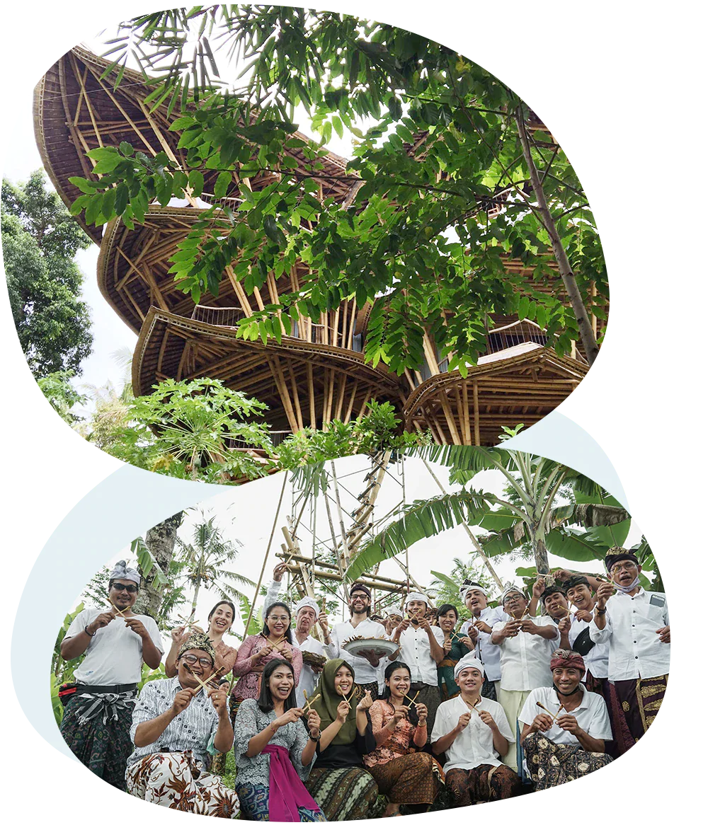Hardy's passion for natural resources are rooted in his upbringing in Bali. His father and stepmother were pioneers in the bamboo industry, co-founding the Green School, a campus built entirely out of bamboo. Following in their footsteps, Orin established Bamboo U together with his wife Maria, an educational enterprise to learn about bamboo design and sustainable architecture.